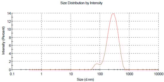 The concentration of unentrapped drug (free drug) in the formulation was measured to establish the percentage drug encapsulation efficiency. This is important because it affects the drug molecule’s release properties. After separating the entrapped drug from the nanoemulsion formulation, the following Equation (1) was used to calculate the amount of drug encapsulated per unit weight of formulation: