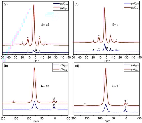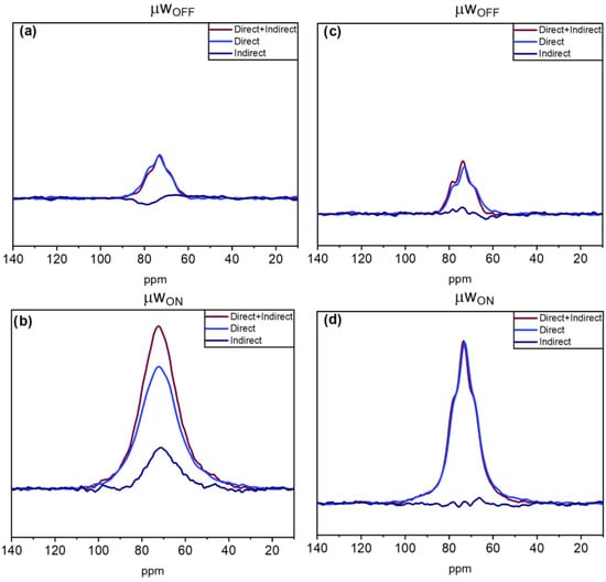 - Hoffmann, M.M.; Bothe, S.; Brodrecht, M.; Klimavicius, V.; Haro-Mares, N.B.; Gutmann, T.; Buntkowsky, G. Direct and Indirect Dynamic Nuclear Polarization Transfer Observed in Mesoporous Materials Impregnated with Nonionic Surfactant Solutions of Polar Polarizing Agents. J. Phys. Chem. C 2020, 124, 5145–5156. [Google Scholar] [CrossRef]