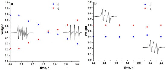 - Eaton, S.S.; Woodcock, L.B.; Eaton, G.R. Continuous Wave Electron Paramagnetic Resonance of Nitroxide Biradicals in Fluid Solution. Concepts Magn. Reson. Part A Bridg. Educ. Res. 2018, 47A, 1–16. [Google Scholar] [CrossRef]