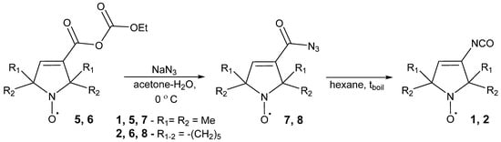 - Tretyakov, E.V.; Ovcharenko, V.I. The Chemistry of Nitroxide Radicals in the Molecular Design of Magnets. Russ. Chem. Rev. 2009, 78, 971–1012. [Google Scholar] [CrossRef]