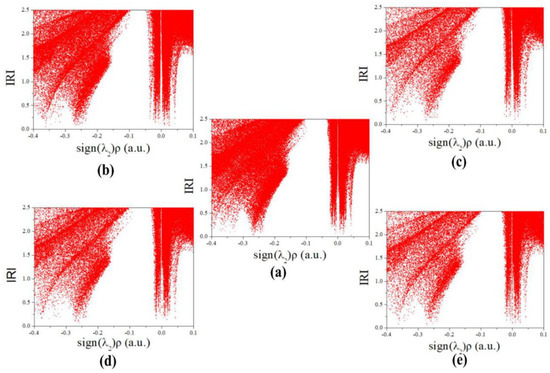 Plots of IRI for CL-20 and its host—guest complex: (a) CL-20, (b) CL-20/H2O2, (c) CL-20/CO2, (d) CL-20/N2O, and (e) CL-20/H2O.