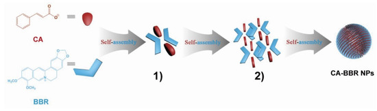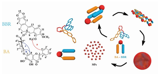 Schematic representation of the self-assembly mechanism of the berberine (BBR) and baicalin (BA) [61].