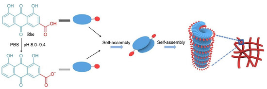 Schematic representation of the self-assembly mechanism of the rhein hydrogel [16].
