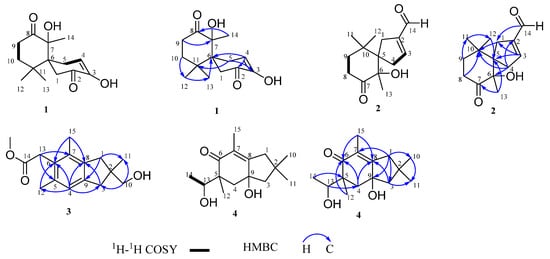 Key 1H-1H COSY and HMBC correlations of compounds 1–4.