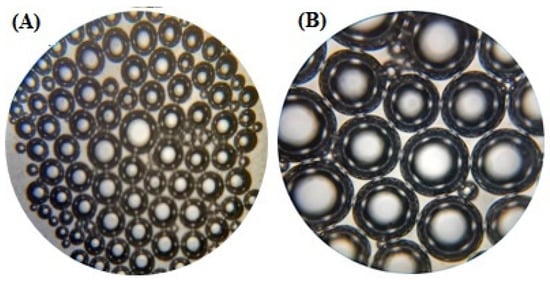 An optical microscope confirmed the formation of spherical vesicles. TELs were uniformly distributed and found to be somewhat spherical in shape. Optical images at a high magnification demonstrated the inner structure of the prepared lipid vesicles. A hybrid-nanostructured dense lipid vesicle composing an outer phospholipid layer with an empty core was observed, as depicted in Figure 2.