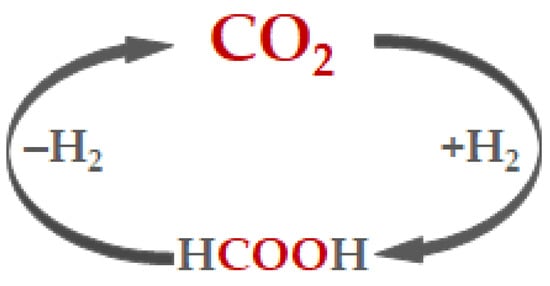 In this way, CO2 is captured and recycled, while the advantage of such a storage alternative is the much simpler and safer manipulation (storage, transportation, etc.) of a stable, biodegradable, and low toxic liquid (FA) than of gaseous hydrogen. The disadvantage comes with the energy consumption associated with the formation and dehydrogenation of FA. Therefore, the main research focus is to improve the efficiency of both catalytic processes—FA formation and FA dehydrogenation—in order to increase the final hydrogen recovery with the minimum possible costs.