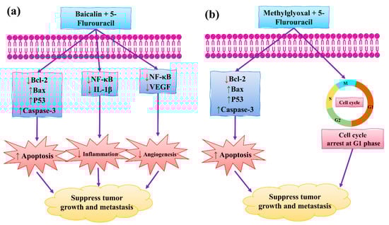 4.2. Synergistic Effects of Baicalin and Methylglyoxal with 5-Fluorouracil