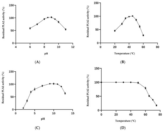 5.1. pH and Thermal Activity and Stability of DrPLA2