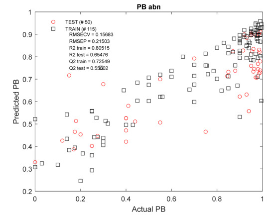 RF models for PBa (na = 35) and PBb (nb = 50) gave poor results, especially in the external validation, similarly to their combined group (nab = 85), where the external validation results were in the range of Q2 = 0.4–0.3.