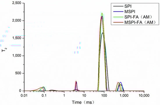 The spin–spin relaxation time (T2) induced by different modified soybean protein isolates.
