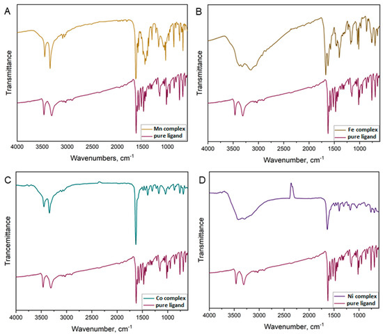 3.3. Synthesis of the Mn(II), Fe(III), Co(II) and Ni(II) Complexes