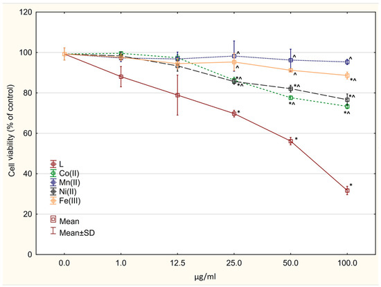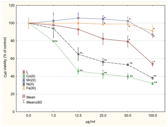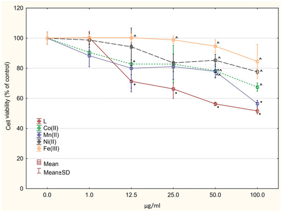 | Ni(L)Cl2∙C2H5OH | 40–160 | 12.5 | 11.49 | Ni(L)Cl2 |