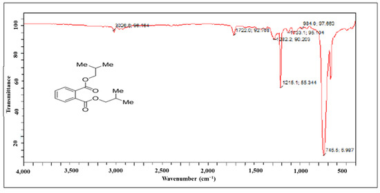 Hence, from the above spectral data and comparison with the literature [24], the compound was identified as 1,2-benzene dicarboxylic acid, bis (2-methyl propyl) (BDCe fraction).
