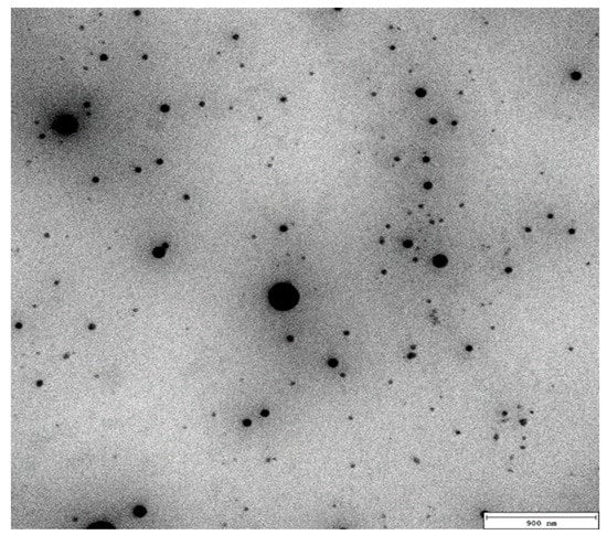Morphology and size of nanoemulsions were also analyzed by transmission electron microscopy (TEM). The TEM image (Figure 4) of the nanoemulsion containing 5% of peppermint oil confirmed that droplets were spherical in the nano-size range.