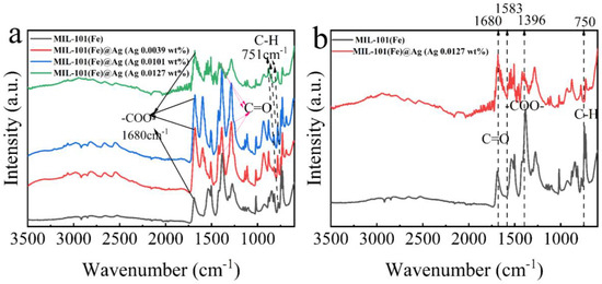 3.2. Preparation of MIL-101(Fe) and MIL-101(Fe)@Ag