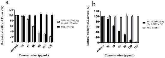 Chicago/Turabian StyleLi, Xi, Huiying Zheng, Jiehan Chen, Mengyuan Xu, Yan Bai, and Tiantian Liu. 2022. "MIL-101 (Fe) @Ag Rapid Synergistic Antimicrobial and Biosafety Evaluation of Nanomaterials" Molecules 27, no. 11: 3497. https://doi.org/10.3390/molecules27113497