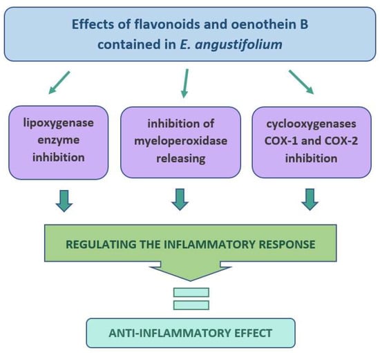 A diagram showing schematically the mechanism of the anti-inflammatory effect of the ingredients contained in E. angustifolium.