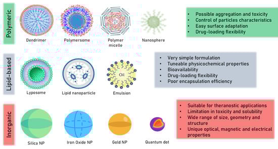 Classification of most common nanoparticles (NP) and their cargo, delivery and patient-response advantages and disadvantages.