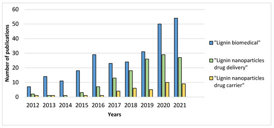 Number of publications per year on the use of lignin in the biomedical field (Web of ScienceTM).
