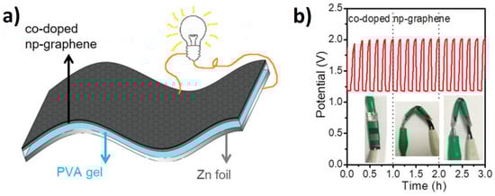 - Qiu, H.-J.; Du, P.; Hu, K.; Gao, J.; Li, H.; Liu, P.; Ina, T.; Ohara, K.; Ito, Y.; Chen, M. Metal and nonmetal codoped 3D nanoporous graphene for efficient bifunctional electrocatalysis and rechargeable Zn-air batteries. Adv. Mater. 2019, 31, 1900843. [Google Scholar] [CrossRef] [PubMed]