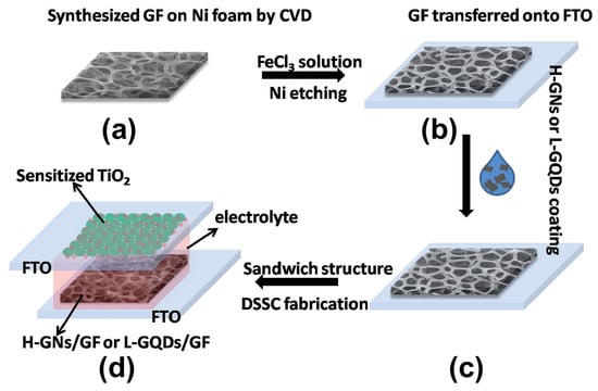 - Chang, Q.; Huang, L.; Wang, J.; Ma, Z.; Li, P.; Yan, Y.; Zhu, J.; Xu, S.; Shen, L.; Chen, Q.; et al. Nanoarchitecture of variable sized graphene nanosheets incorporated into 3D graphene network for DSSC. Carbon 2015, 85, 185–193. [Google Scholar] [CrossRef]