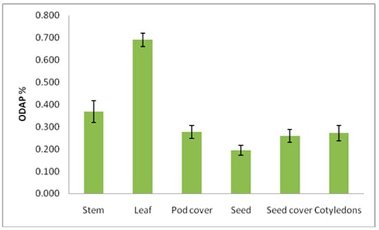 | Plant Part | Total ODAP Content (%) (Mean ± SE) | |||||