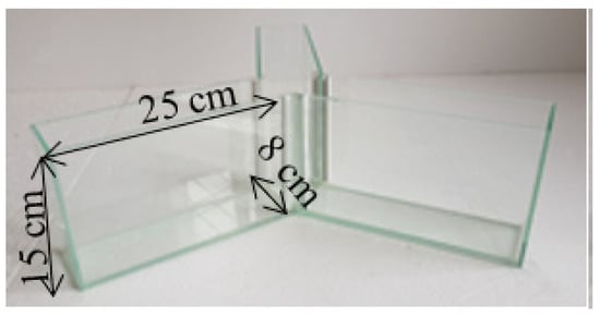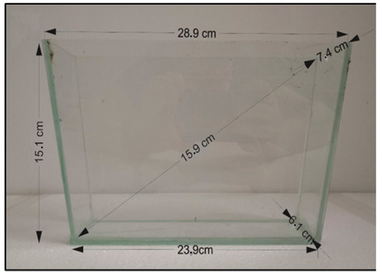In the NTT, the zebrafish exhibits robust behavioral responses to novelty-provoked anxiety. The NTT protocol applied in this study was described before by [38,39]. The testing apparatus (Figure 6) consisted of a trapezoidal shaped glass tank filled with 1.5 L of home tank water and having the following dimensions: 23.9 cm along the bottom × 28.9 cm at the top × 15.1 cm high with 15.9 cm along the diagonal side, 7.4 cm wide at the top and 6.1 cm wide at the bottom. The fish were individually placed in the testing tank and their behavior was recorded for 6 min with a webcam placed at 40 cm in the front of the tank. The tank was virtually divided into the top zone and bottom zone, respectively. To measure anxiety-like behavior and the locomotor activity of the zebrafish, we used the behavioral endpoints described previously by Cachat et al. [38].