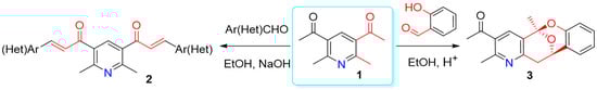- Oleshchuk, A.L.; Karbainova, A.A.; Krivoruchko, T.N.; Shulgau, Z.T.; Seilkhanov, T.M.; Kulakov, I.V. Synthesis and biological activity of 3, 5-diacetyl-2, 6-dimethylpyridine derivatives. Chem. Heterocycl. Compd. 2019, 55, 47–51. [Google Scholar] [CrossRef]