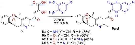 - Gein, V.L.; Rassudikhina, N.A.; Shepelina, N.V.; Vakhrin, M.I.; Babushkina, E.B.; Voronina, E.V. Reaction of substituted o-aminophenols with acylpyruvic acid esters and α-ketoglutaric acid. Antibacterial activity of the products. Pharm. Chem. J. 2008, 42, 529–532. [Google Scholar] [CrossRef]