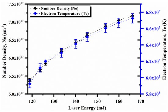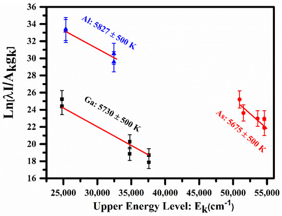 - Shakeel, H.; Arshad, S.; Haq, S.U.; Nadeem, A. Electron temperature and density measurements of laser induced germanium plasma. Phys. Plasmas 2016, 23, 053504. [Google Scholar] [CrossRef]