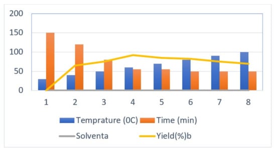 | Entry No. | Temperatures (°C) | Period (min) | Solvent a | Yield (%) b |