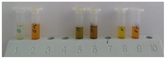 Flaxseed, grape seed, and hempseed oils were used in the present study to describe the rheological, namely the flow behavior of the oils before and after carotenoid addition. To illustrate the viscoelastic features of three types of vegetable oils mainly used without thermal processing, they have been established together with their enrichment with a carotenoid extract. These oils are used in the food industry primarily in the production of healthy milk, salads, and yogurts, and they are also an essential element of the ketogenic diet [,]. Before the measurements, an equal concentration of carotenoids in each oil sample (40 µg/mL) was assured. The acquired results of the three oils (flaxseed, hempseed, and grapeseed) are presented in Figure 5a–c.