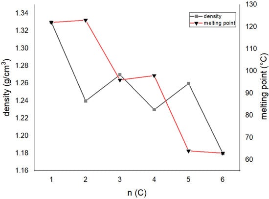 - Thalladi, V.R.; Boese, R.; Weiss, H.-C. The Melting Point Alternation in α,ω-Alkanediols and α,ω-Alkanediamines: Interplay between Hydrogen Bonding and Hydrophobic Interactions. Angew. Chem. Int. Edit. 2000, 39, 918–922. [Google Scholar] [CrossRef]