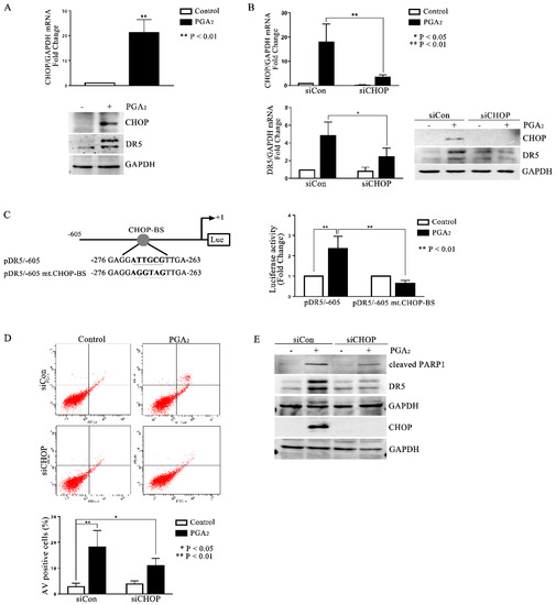 2.3. Involvement of CHOP in PGA2-Induced Apoptosis and Expression of DR5
