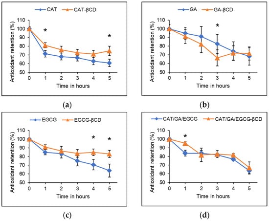 3.5. Thermal and Storage Stability of the Inclusion Complexes with Respect to the Antioxidant Retention