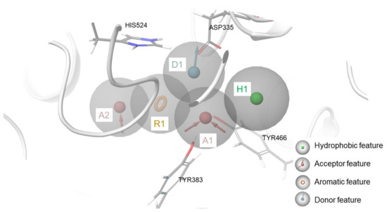 Specifically, following the definitions of specific features as implemented in the Develop Pharmacophoric Hypothesis panel (Phase [63,64,65]), “A” indicates an acceptor group, “D” indicates a donor group, “H” a hydrophobic one, and “R” an aromatic ring.