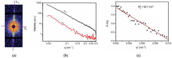 To obtain the size of the orientated lamellar crystal defects, SAXS scattering data were processed. Since the scattering signal is clearly oriented, the integral can be carried out along the orientation direction (S12), as shown in Figure 4. For the lamellar defect, the scattering signal along the S12 direction satisfies the Guinier Formula [30]: