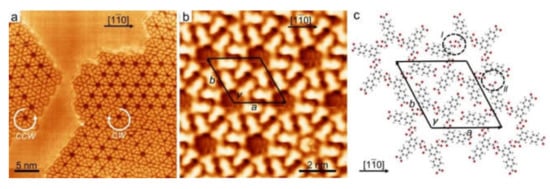 - Lipton-Duffin, J.; Abyazisani, M.; MacLeod, J. Periodic and nonperiodic chiral self-assembled networks from 1,3,5-benzenetricarboxylic acid on Ag(111). Chem. Commun. 2018, 54, 8316–8319. [Google Scholar] [CrossRef] [Green Version]