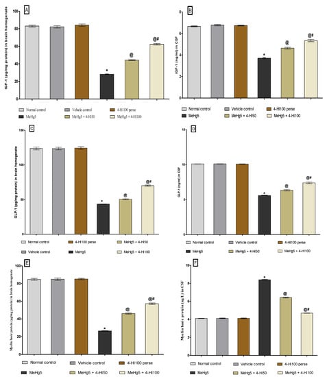 There is no particular treatment for curing ALS in the present scenario, nor are there associated biomarkers. Moreover, based on the above findings, we hypothesised that 4-HI could enhance IGF-1/GLP-1 target signalling mechanisms and attenuate neurodegenerative changes in MeHg+-induced experimental rats. Further, 4-HI could be combined with other standard pharmacological therapies to improve the lives of people with demyelinating diseases like ALS. Therefore, in the current research, we investigated and evaluated 4-HI’s neuroprotective profile in rat brain homogenate, blood plasma, and CSF samples to see if these biological samples may be valuable and repeatable diagnostic biomarkers during the early stages of neurological degeneration.