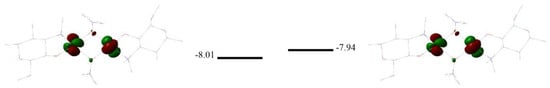 - Frisch, M.J.; Trucks, G.W.; Schlegel, H.B.; Scuseria, G.E.; Robb, M.A.; Cheeseman, J.R.; Scalmani, G.; Barone, V.; Petersson, G.A.; Nakatsuji, H.; et al. Gaussian 16, Revision C.01; Gaussian Inc.: Wallingford, CT, USA, 2016. [Google Scholar]
