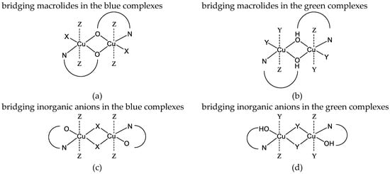 - Hathaway, B.J.; Billing, D.E. The electronic properties and stereochemistry of mononuclear complexes of the copper(II) ion. Coord. Chem. Rev. 1970, 5, 143–207. [Google Scholar] [CrossRef]