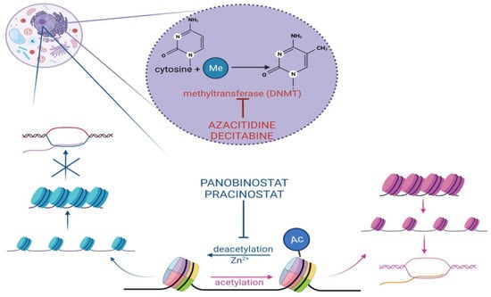 - Ungerstedt, J. Epigenetic Modifiers in Myeloid Malignancies: The Role of Histone Deacetylase Inhibitors. Int. J. Mol. Sci. 2018, 19, 3091. [Google Scholar] [CrossRef]