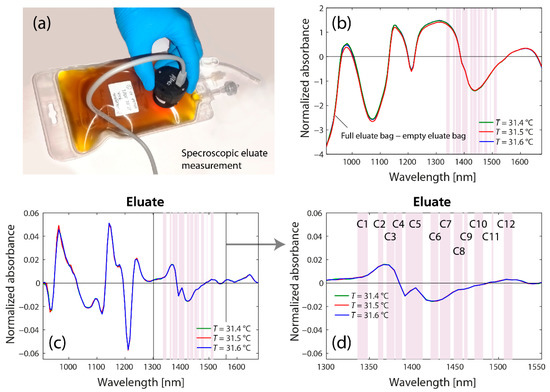 For the analysis of the eluate measurements, the spectrum of the empty plastic bag containing the eluate was removed from the spectrum of the eluate measured through the plastic bag. With this, the spectra of the eluate itself was obtained.