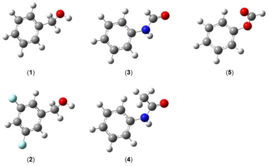 There are also investigations of molecules in which a carbonyl-group-containing substituent (a formyl or an acetyl group) is present, as summarized in Figure 4.