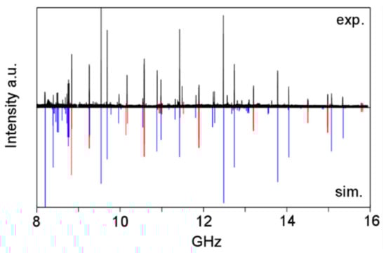 - Ferres, L. Quantum Chemical and Microwave Spectroscopic Investigations on Phenyl Ring Containing Molecules; RWTH Aachen University: Aachen, Germany, 2019. [Google Scholar]