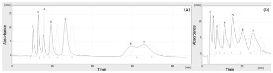 - Howard, A.; Shafik, T.; Moffatt, F.; Wilson, I. Electroosmotically Driven Thin-Layer Electrochromatography on Silica Media. J. Chromatogr. A 1999, 844, 333–340. [Google Scholar] [CrossRef]