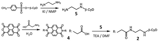 N,N′-Bis(3-methylaminopropyl)naphthalene-1,4,5,8-tetracarboxylic acid diimide and Tosyl-β-cyclodextrin (CyD) were synthesized by the route previously reported [34,35]. See Scheme 1.