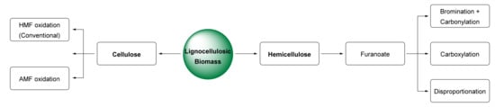 - Delidovich, I.; Hausoul, P.J.C.; Deng, L.; Pfützenreuter, R.; Rose, M.; Palkovits, R. Alternative monomers based on lignocellulose and their use for polymer production. Chem. Rev. 2016, 116, 1540–1599. [Google Scholar] [CrossRef]