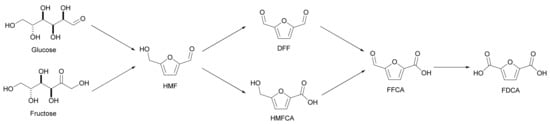 - Fei, X.; Wang, J.; Zhang, X.; Jia, Z.; Jiang, Y.; Liu, X. Recent progress on bio-based polyesters derived from 2,5-furandicarbonxylic acid (FDCA). Polymers 2022, 14, 625. [Google Scholar] [CrossRef]