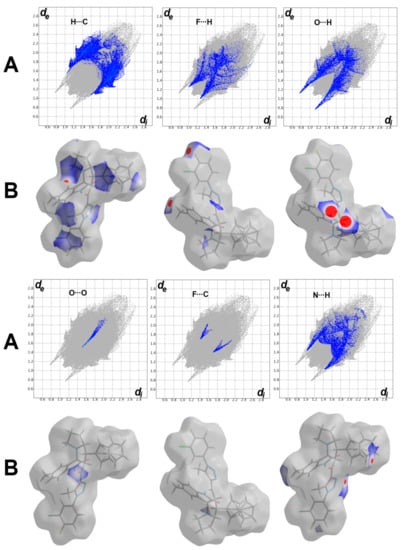 Fingerprint plots (A) and decomposed dnorm maps (B) of short contacts in 8.